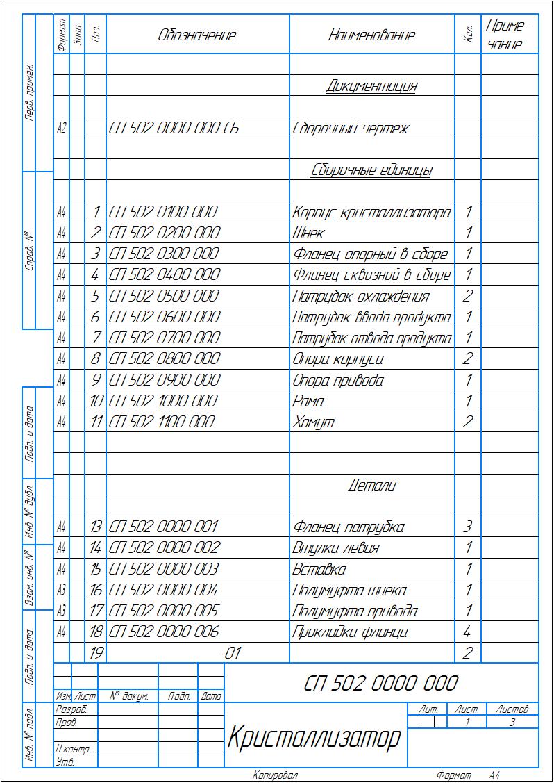 Полный пакет документов включал: сборочные чертежи общего вида, сборочные чертежи каждого узла, чертежи деталей, спецификации, пояснительную записку с расчетами.